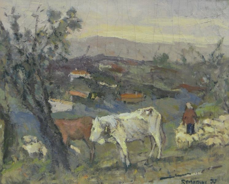Remorini ( - ) is an Italian painter. Remorini s works have been auctioned off multiple times, with realized prices varying according to the size and medium of the artwork, for instance of 58.57 USD for farm landscape with cattle 1977 in 2012