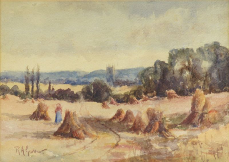 Robert A Gardner ( 1850 - 1926 ) was a painter. Robert A Gardner s works have been put up for auction numerous times, with realized prices varying from 45.75 USD for Winter scene at Cawthorpe Hall in 2014 to 144.87 USD for Landscape at harvest time with stooks of corn and a figure in 2014 , based on the size and medium of the artwork.