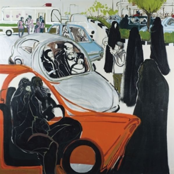 Rokny Haerizadeh ( 1978 - ) is an Iranian painter. Rokny Haerizadeh s works have been put up for auction numerous times, with realized prices surpassing estimated prices, varying from 15600 USD for Khosrow and Shirin in 2007 to 80500 USD for Women in Cars in 2008 , based on the size and medium of the artwork.