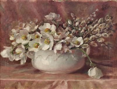Rosa Scherer ( 1868 - 1926 ) was a painter. Rosa Scherer s works have been put up for auction numerous times, with realized prices surpassing estimated prices, varying from 183.8 USD for Stilleben mit Pfirsichen und Trauben in 2005 to 1032.67 USD for Frühlingsboten in weißer Schale in 2012 , based on the size and medium of the artwork.