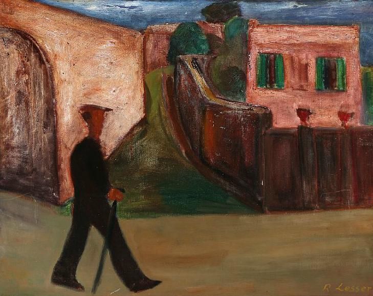 Rudi Lesser ( 1901 - 1987 ) was a German painter. Rudi Lesser s works have been put up for auction numerous times, with realized prices surpassing estimated prices, varying from 11.51 USD for Stadtsilhouette mit zahlreichen Kirchtürmen in 2005 to 1358.48 USD for Walking man in 2014 , based on the size and medium of the artwork.
