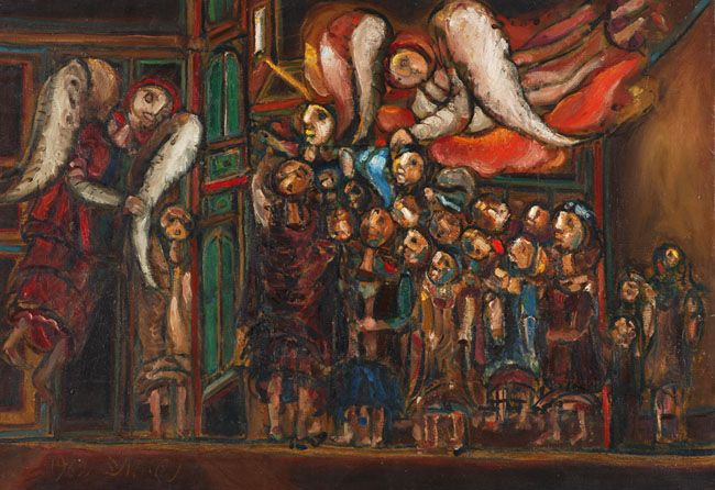 Schmuel Boneh ( 1930 - 1999 ) was an Israeli painter. Schmuel Boneh s works have been put up for auction numerous times, with realized prices surpassing estimated prices, varying from 600 USD for THE VISION OF EZEKIEL in 2004 to 4370 USD for Angels, 1962, in 2008 , based on the size and medium of the artwork.