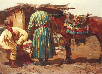 Sergei Kolessnikoff ( 1889 - 1952 ) was a Russian painter. Sergei Kolessnikoff s works have been put up for auction numerous times, with realized prices surpassing estimated prices, varying from 9200 USD for SPRING PLOWING in 2007 to 34316.77 USD for Les Sartes. Turkestan in 2009 , based on the size and medium of the artwork.