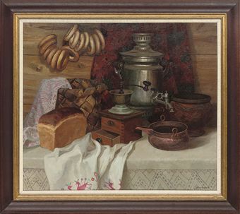 Sergei Mikhailov ( - ) is a Russian painter. Sergei Mikhailov s works have been auctioned off multiple times, with realized prices varying according to the size and medium of the artwork, for instance of 524.62 USD for Bread, bagels, a coffee grinder and a tea urn, on a table in 2009