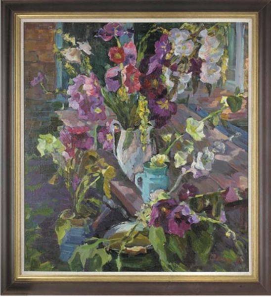 Sergei Shapovalov ( 1948 - ) is a Russian painter. Sergei Shapovalov s works have been auctioned off multiple times, with realized prices varying according to the size and medium of the artwork, for instance of 528.96 USD for Hollyhocks in 2007