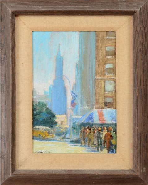 Simon Bross ( 1900 - ) is a British painter. Simon Bross s works have been put up for auction numerous times, with realized prices varying from 200 USD for FIFTH AVENUE in 2014 to 300 USD for 59TH STREET AND 6TH AVENUE in 2014 , based on the size and medium of the artwork.