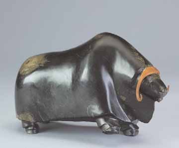 Simon Qamanirq ( 1953 - ) is a painter. Simon Qamanirq s works have been put up for auction numerous times, with realized prices surpassing estimated prices, varying from 1688.21 USD for A dark green soapstone running musk ox with horns in 2006 to 6752.84 USD for A dark green soapstone running musk ox with horns in 2006 , based on the size and medium of the artwork.