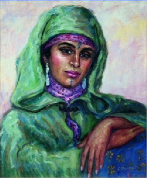 Solange Monvoisin ( 1911 - 1985 ) was a French painter. Solange Monvoisin s works have been put up for auction numerous times, with realized prices surpassing estimated prices, varying from 1570.06 USD for Jeune marocaine aux tatouages in 2005 to 3353.24 USD for Belle Marocaine aux tatouages in 2006 , based on the size and medium of the artwork.