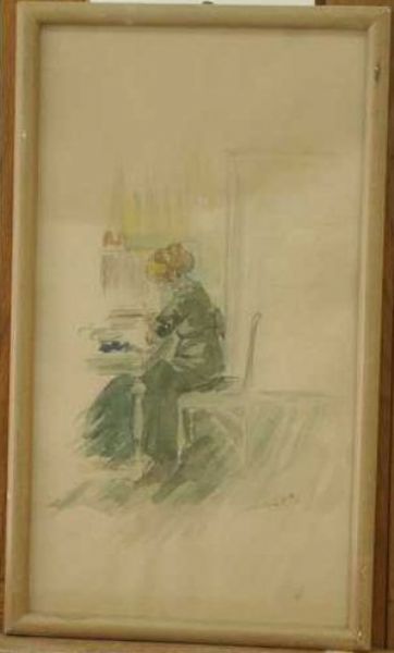 Stina Kolthoff ( - ) is a painter. Stina Kolthoff s works have been put up for auction numerous times, with realized prices surpassing estimated prices, varying from 54.78 USD for Flicka vid skrivbord, SK-FF in 2006 to 96.92 USD for portr√§tt in 2006 , based on the size and medium of the artwork.