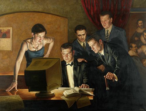 Stuart Luke Gatherer ( 1971 - ) is a British painter. Stuart Luke Gatherer s works have been put up for auction numerous times, with realized prices surpassing estimated prices, varying from 1471.45 USD for The Unveiling in 2013 to 3090.05 USD for The Optimism of Contemporary Life in 2013 , based on the size and medium of the artwork.