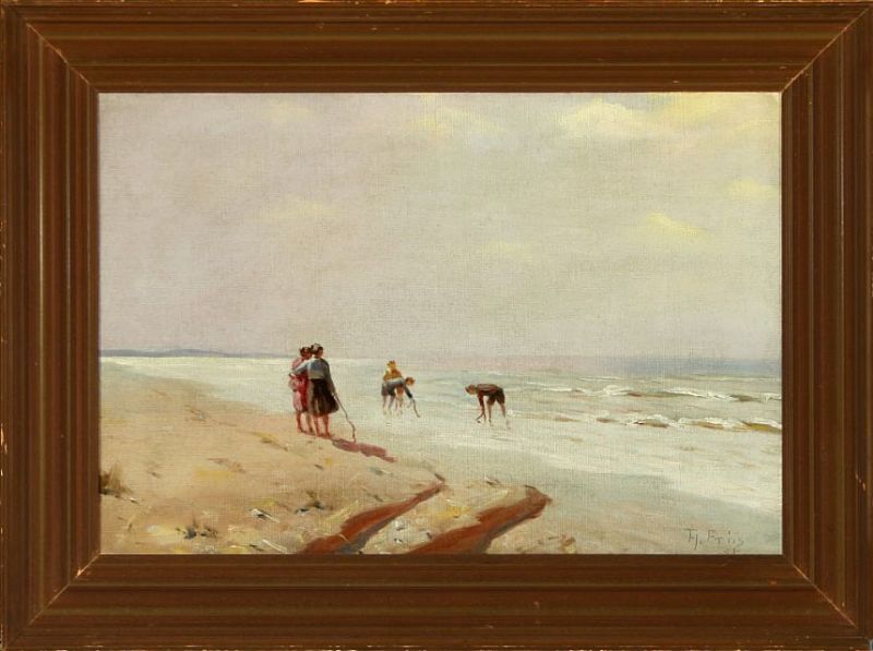 Th Friis ( 1879 - 1959 ) was a Danish painter. Th Friis s works have been put up for auction numerous times, with realized prices surpassing estimated prices, varying from 290.66 USD for Blåsende sommerdag på Skagen strand in 2004 to 905.93 USD for Costal scenery from Skagen with people on the beach in 2010 , based on the size and medium of the artwork.