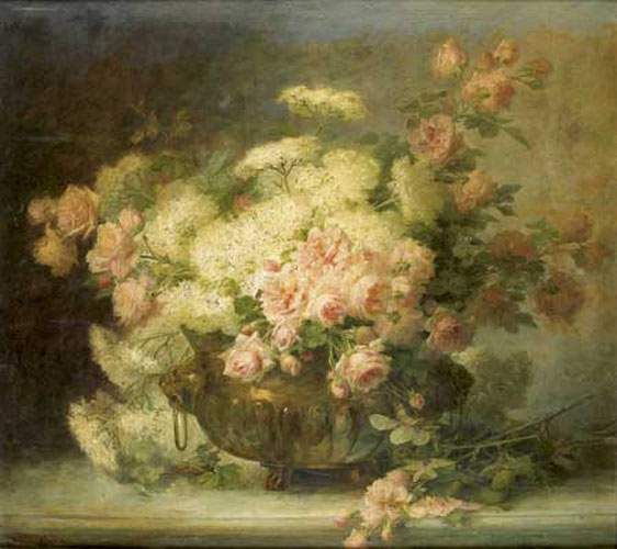 Thérèse Guerin ( 1861 - 1933 ) was a French painter. Thérèse Guerin s works have been put up for auction numerous times, with realized prices surpassing estimated prices, varying from 4691.88 USD for NATURE MORTE AU BOUQUET DE PIVOINES in 2007 to 5243.96 USD for NATURE MORTE AU BOUQUET DE FLEURS DANS UN VASE EN CUIVRE SUR UN ENTABLEMENT in 2007 , based on the size and medium of the artwork.