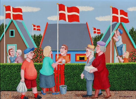 Tom M Jensen ( 1924 - ) is a painter. Tom M Jensen s works have been put up for auction numerous times, with realized prices surpassing estimated prices, varying from 27.79 USD for Barrel-organ man. in 2013 to 997.08 USD for Kolonihaves√∏ndag in 2018 , based on the size and medium of the artwork.