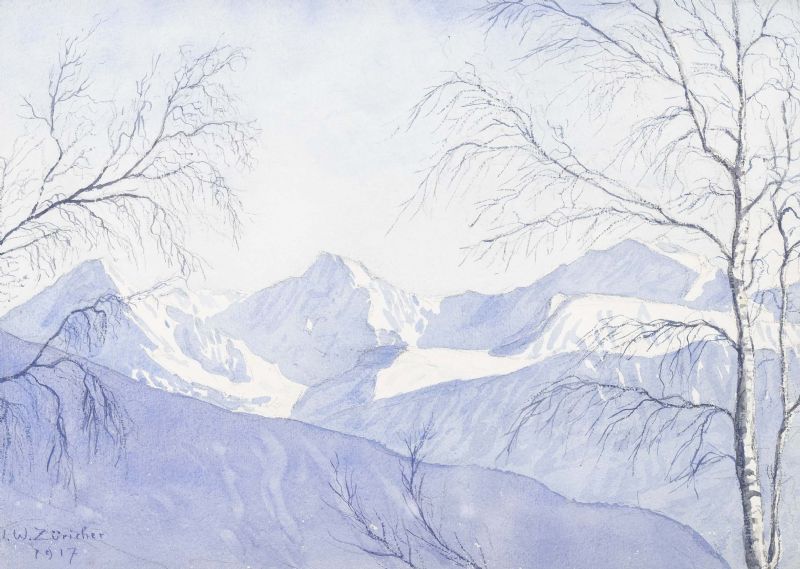 Ulrich Wilhelm Züricher ( 1877 - 1961 ) was a painter. Ulrich Wilhelm Züricher s works have been put up for auction numerous times, with realized prices varying from 41.53 USD for Wiese in den Alpen mit kleinen Chalets in 2006 to 713.19 USD for Eiger, M√∂nch und Jungfrau in der Wintersonne. in 2013 , based on the size and medium of the artwork.