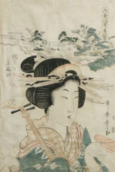 Utagawa Utamaro Ii ( 1789 - 1831 ) was a painter. Utagawa Utamaro Ii s works have been put up for auction numerous times, with realized prices surpassing estimated prices, varying from 333.17 USD for eim Knabenfest sitzt eine Mutter mit ihrem Sohn vor einem Gestell, auf dem drei Fahnen montiert sind, und auf dem eine Pfeife li in 2004 to 383.14 USD for Kopfport√§t der oiran Takigawa in einem mit