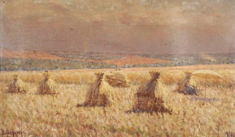 V Fedorov ( - ) is a painter. V Fedorov s works have been auctioned off multiple times, with realized prices varying according to the size and medium of the artwork, for instance of 871.1 USD for Les Meules in 2014