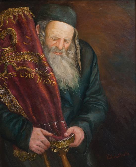 Victoria Shasha ( 1967 - ) is a British painter. Victoria Shasha s works have been put up for auction numerous times, with realized prices surpassing estimated prices, varying from 7995 USD for Hachnassat Orchim in 2016 to 9840 USD for Intense Love of Torah in 2016 , based on the size and medium of the artwork.