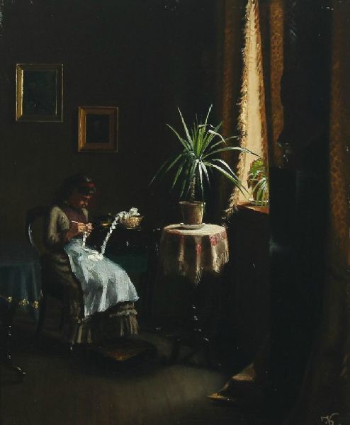 Vilhelm Benzen ( - ) is a painter. Vilhelm Benzen s works have been put up for auction numerous times, with realized prices surpassing estimated prices, varying from 108.74 USD for Still life with flowers in a vase in 2007 to 310.48 USD for Interior with young woman crocheting. in 2014 , based on the size and medium of the artwork.