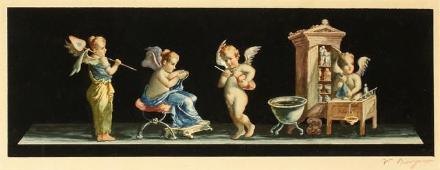 Vincenzo Bisogno ( 1866 - ) is an Italian painter. Vincenzo Bisogno s works have been put up for auction numerous times, with realized prices varying from 195.21 USD for Processions of cherubs in 2005 to 538.97 USD for Putten, ein Wagenrennen veranstaltend. in 2006 , based on the size and medium of the artwork.