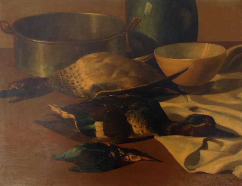 Vittorini Rossi ( 1900 - ) is a painter. Vittorini Rossi s works have been auctioned off multiple times, with realized prices varying according to the size and medium of the artwork, for instance of 66.5 USD for Still life - dead birds beside cooking pot in 2015