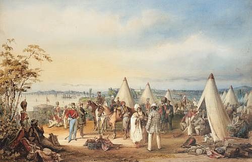 Vittorio Amadeo ( 1816 - 1882 ) was a Maltese painter. Vittorio Amadeo s works have been put up for auction numerous times, with realized prices surpassing estimated prices, varying from 8351.73 USD for Les Gueux a Constantinople, 1876 all inscribed, seventy three dated 1876,thirteen dated 1877 in 2003 to 23359.52 USD for The allied fleets anchored in the Bosphorus, 1853 in 2005 , based on the s