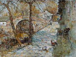 Weiyin Ren ( 1918 - 1994 ) was a painter. Weiyin Ren s works have been put up for auction numerous times, with realized prices surpassing estimated prices, varying from 1325.65 USD for Tiger Hill with the Yunyan Temple Tower, Suzhou China in 2008 to 70712 USD for A Bridge in Shanghai in 2011 , based on the size and medium of the artwork.