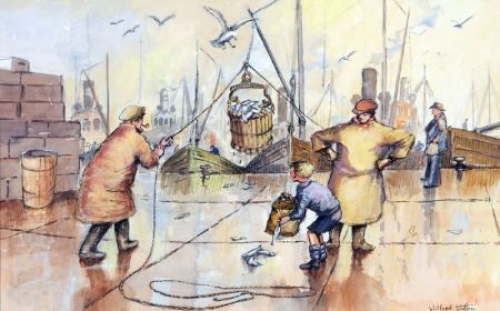 Wilfred Sutton ( - ) is a painter. Wilfred Sutton s works have been put up for auction numerous times, with realized prices varying from 25.78 USD for Two Figures and Dog on the Beach at Lowestoft in 2011 to 58.3 USD for Unloading the Catch Lowestoft Harbour in 2011 , based on the size and medium of the artwork.