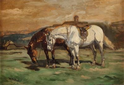 Wilhelm Höhnel ( 1871 - 1941 ) was an Austrian painter. Wilhelm Höhnel s works have been put up for auction numerous times, with realized prices surpassing estimated prices, varying from 488.91 USD for 3 Pferde in 2004 to 1387.14 USD for Zwei Reitpferde in 2013 , based on the size and medium of the artwork.