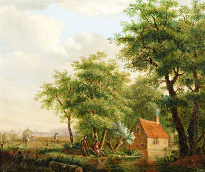 Willem Uppink ( 1757 - 1849 ) was a Dutch painter. Willem Uppink s works have been auctioned off multiple times, with realized prices varying according to the size and medium of the artwork, for instance of 364.67 USD for Landschapje met vissers en figuren bij hooiwagen in 2010