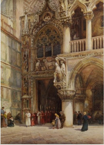 William Harding Collingwood Smith ( 1848 - 1922 ) was a British painter. William Harding Collingwood Smith s works have been put up for auction numerous times, with realized prices surpassing estimated prices, varying from 954.48 USD for Kensington High Street on Queen Victoria`s Diamond Jubilee, 1897 in 2003 to 1844.49 USD for DER DOGENPALAST in 2009 , based on the size and medium of the artwor