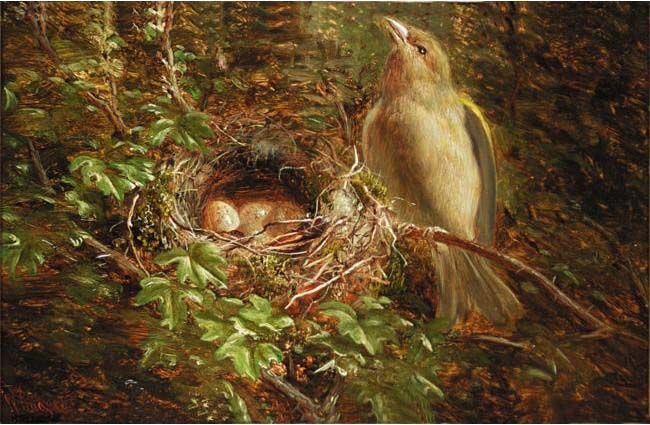 William Hughes ( 1793 - 1825 ) was a British painter. William Hughes s works have been auctioned off multiple times, with realized prices varying according to the size and medium of the artwork, for instance of 974.08 USD for CHAFFINCH NESTING; GREEN FINCH GUARDING THE NEST in 2007