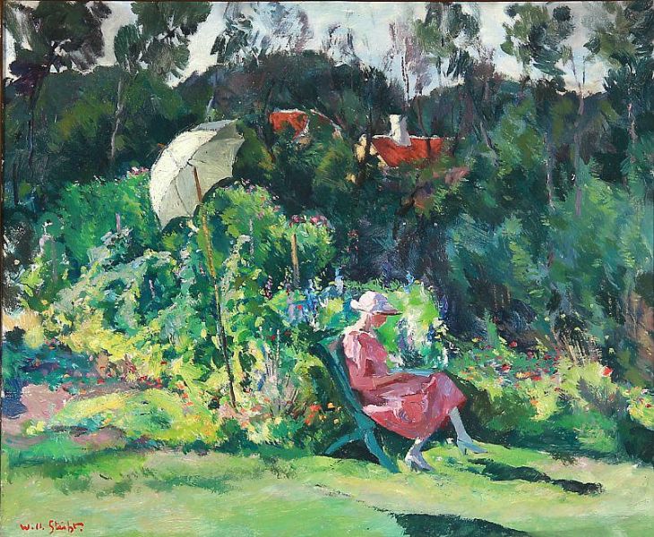 William Stuhr ( 1882 - 1958 ) was a painter. William Stuhr s works have been put up for auction numerous times, with realized prices surpassing estimated prices, varying from 205.43 USD for The Tea Pot in 2005 to 2531.1 USD for A lady reads in a sunny garden in Skagen, Denmark in 2012 , based on the size and medium of the artwork.