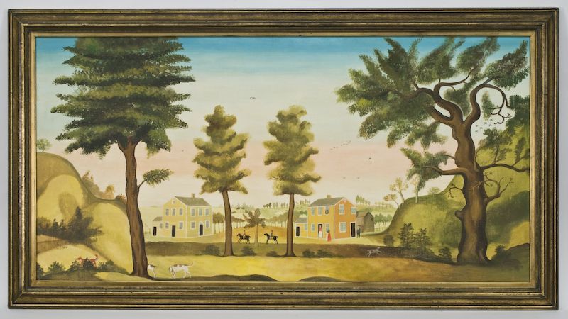 Winthrop Chandler ( 1747 - 1790 ) was an American painter. Winthrop Chandler s works have been auctioned off multiple times, with realized prices varying according to the size and medium of the artwork, for instance of 61000 USD for A LANDSCAPE WITH TREES, RED AND YELLOW HOUSES ON A LAKE , HOUND PURSUING A RED FOX in 2008
