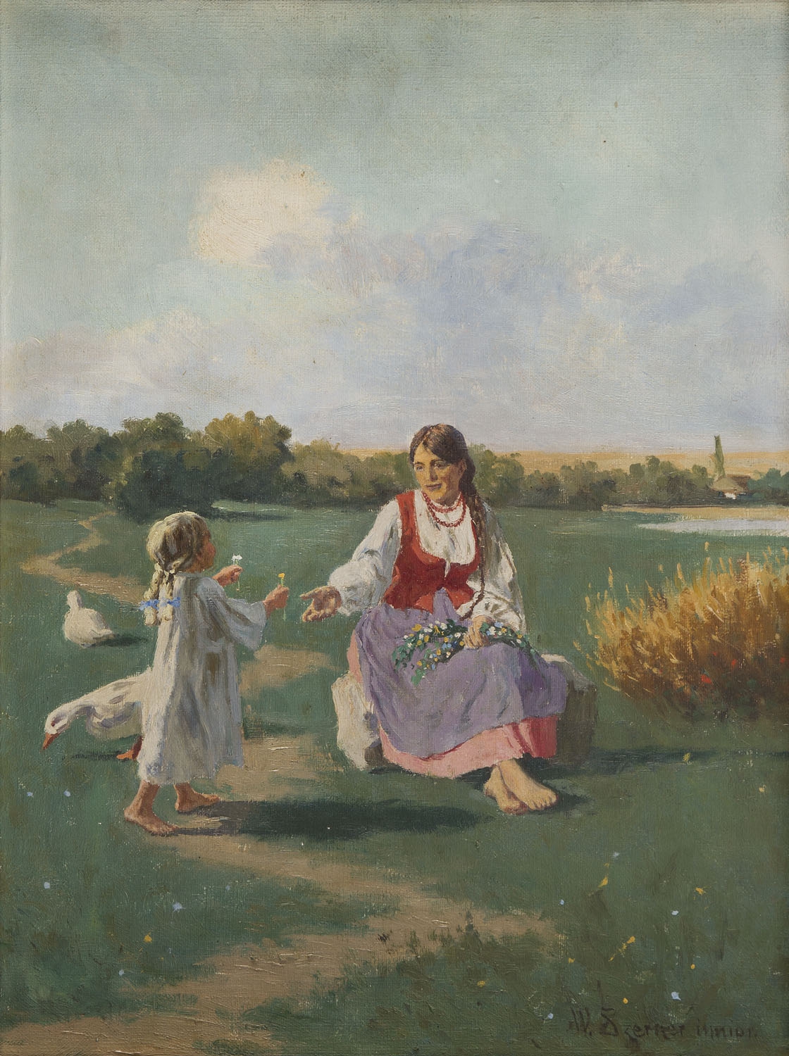 Wladyslaw Szerner Junior ( 1870 - 1936 ) was a Polish painter. Wladyslaw Szerner Junior s works have been auctioned off multiple times, with realized prices varying according to the size and medium of the artwork, for instance of 1830.42 USD for Woman with child in 2017