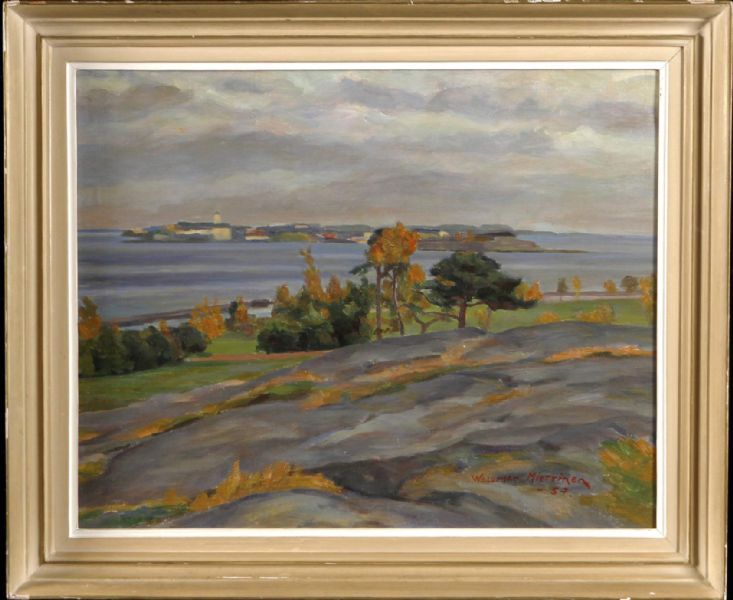 Woldemar Miettinen ( 1886 - 1962 ) was a Finnish painter. Woldemar Miettinen s works have been auctioned off multiple times, with realized prices varying according to the size and medium of the artwork, for instance of 173.41 USD for STRANDTALLAR in 2005