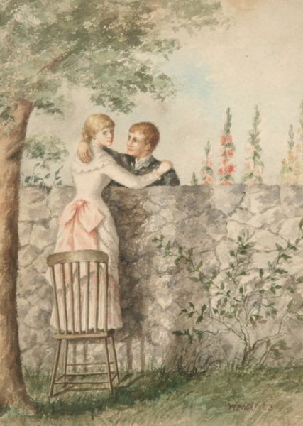 Wright ( 1860 - 1944 ) was a British painter. Wright s works have been auctioned off multiple times, with realized prices varying according to the size and medium of the artwork, for instance of 236 USD for LOVERS AT THE WALL in 2006