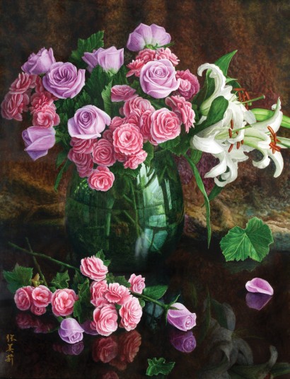 Zhang Meili ( 1945 - ) is a Chinese painter. Zhang Meili s works have been auctioned off multiple times, with realized prices varying according to the size and medium of the artwork, for instance of 21600 USD for A Vase of Flowers in 2016