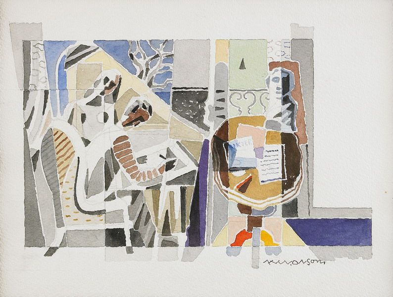 Komposition med bord och ritande man