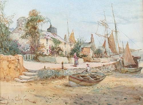 Cottage by the shore, together with another similar, view from a bay with sailing boats, a pair