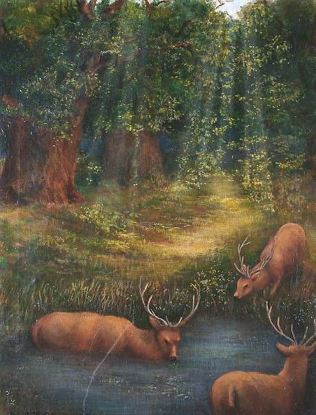 A kitchen interior with a dead hare and dead pheasants on a tabletop with an earthenware jar and copper pan.