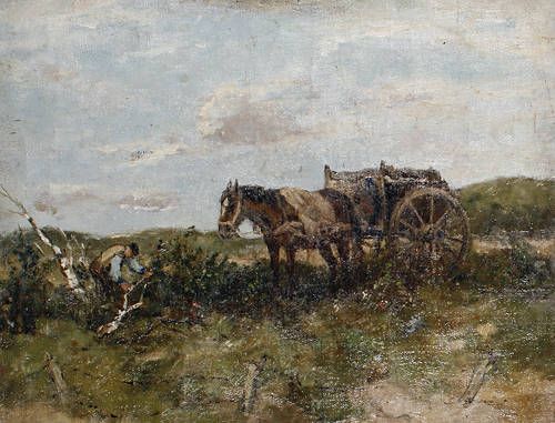 Figures with cattle crossing a ford with an extensive landscape beyond