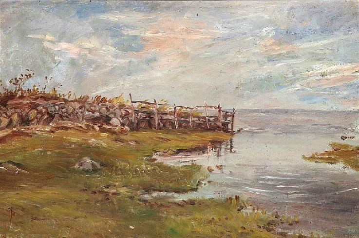 Coastel scene with fishing wessels.