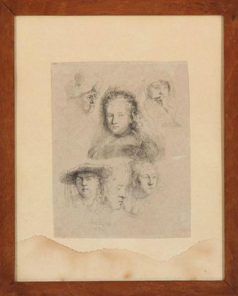 Studies of the head of Saskia and others.