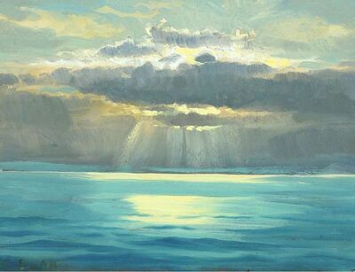 Seascape with sunlight through clouds