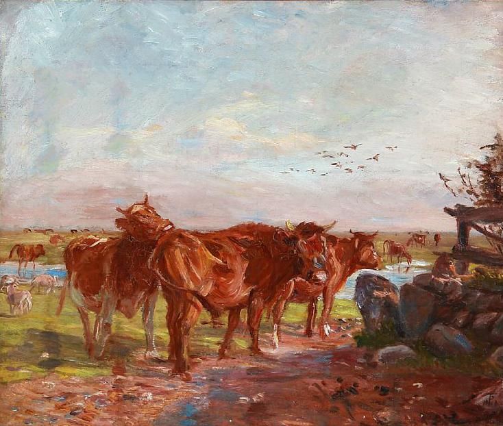 Bag Vanderens Vænge. Saltholm, Country road with cows.