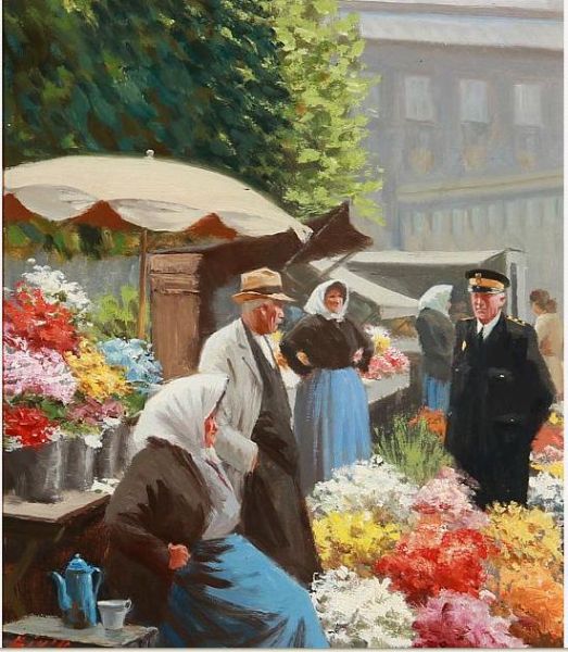 Fishermen's wifes seeling flowers at Gl. Strand in Copenhagen