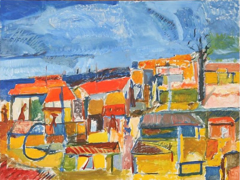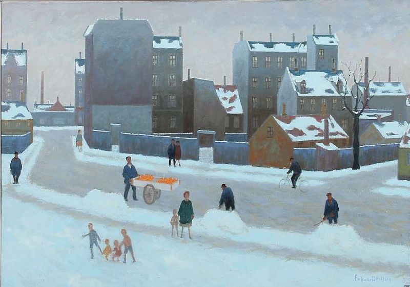 Scenery from Nyhavn. Marked on the reverse "painted by E. Weie, witness by Alfred Andersen"