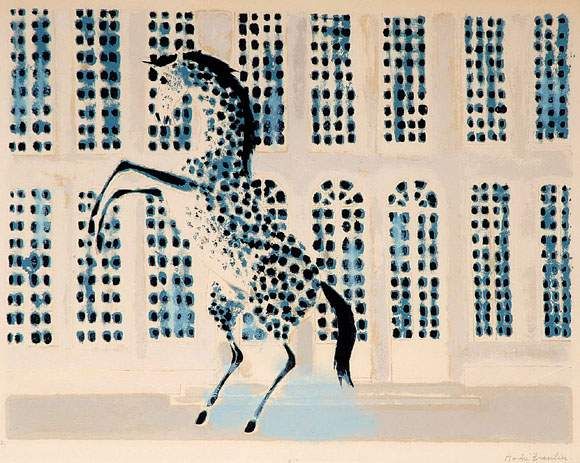Paysage aux peupliers, à l'étang et aux pêcheurs