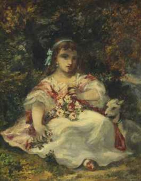 A Farmer with three Cows, three Sheep, one Goat and five Chickens in a Landscape