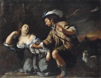 Campo di battaglia con città sullo sfondo; e Battaglia sul fiume con ponte sullo sfondo